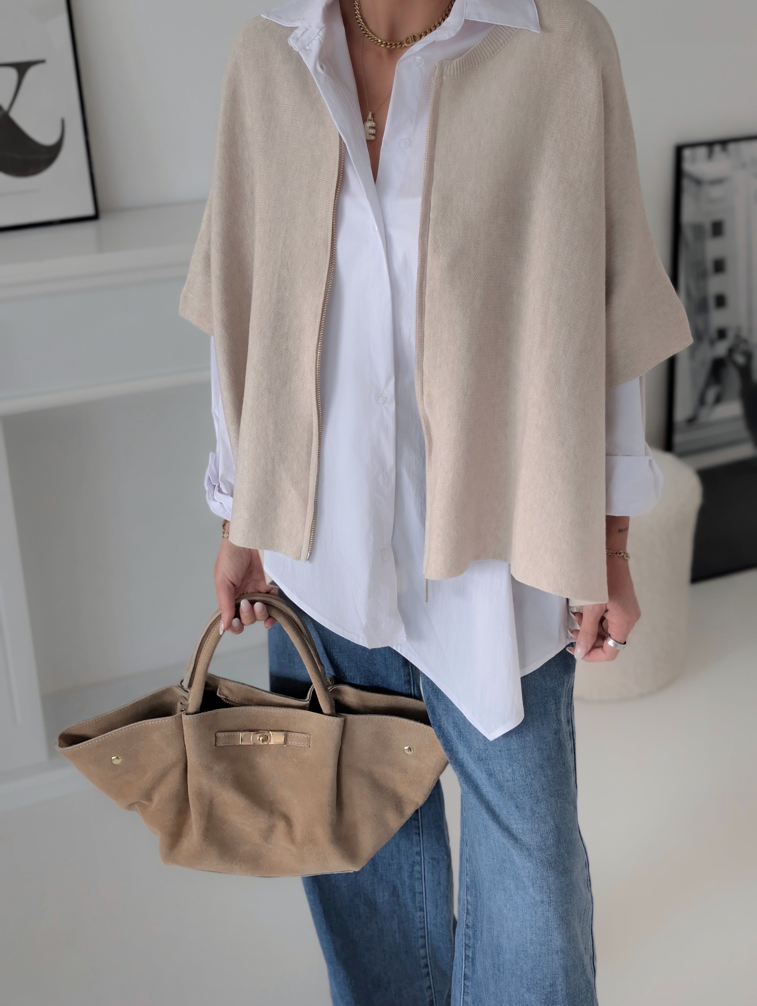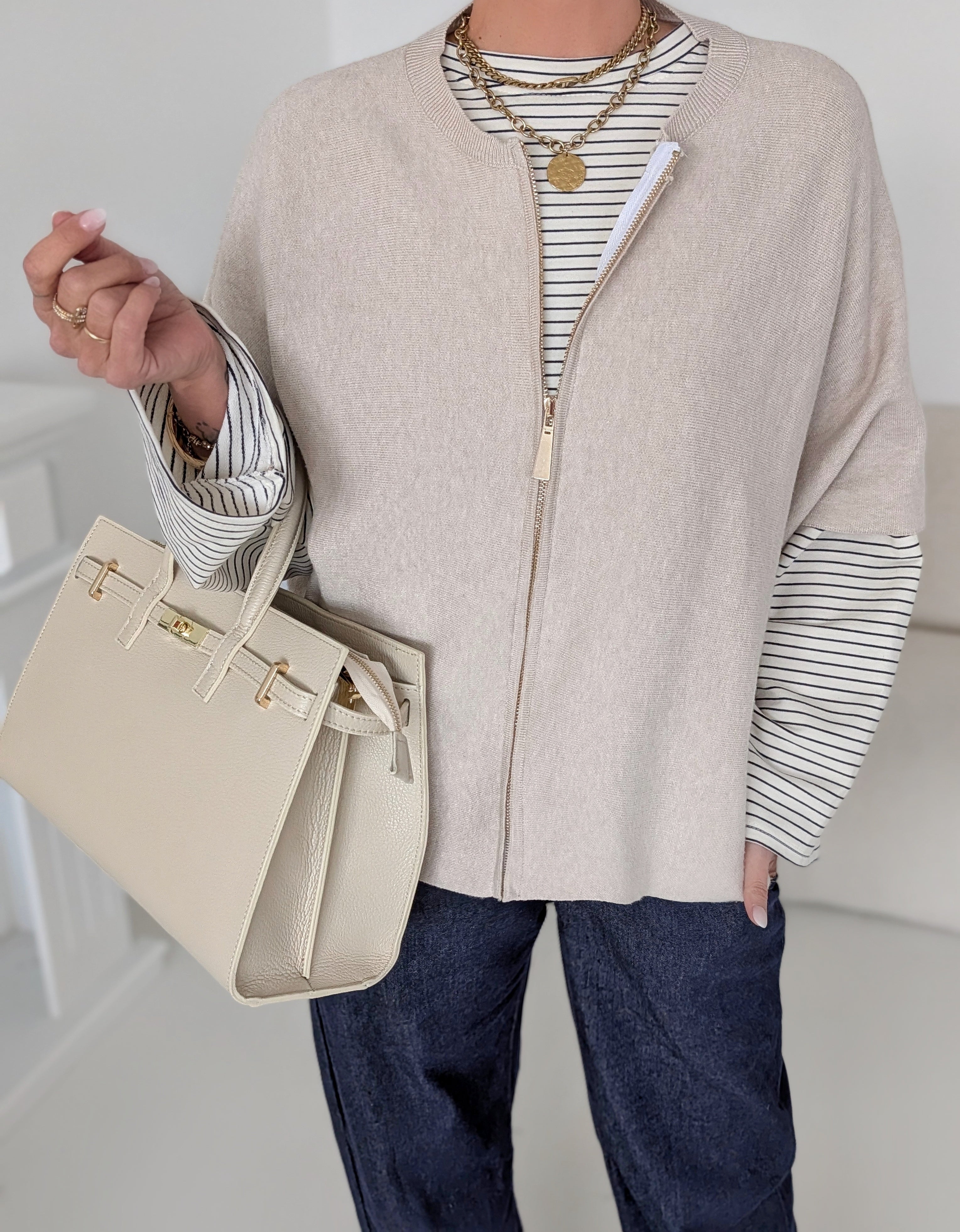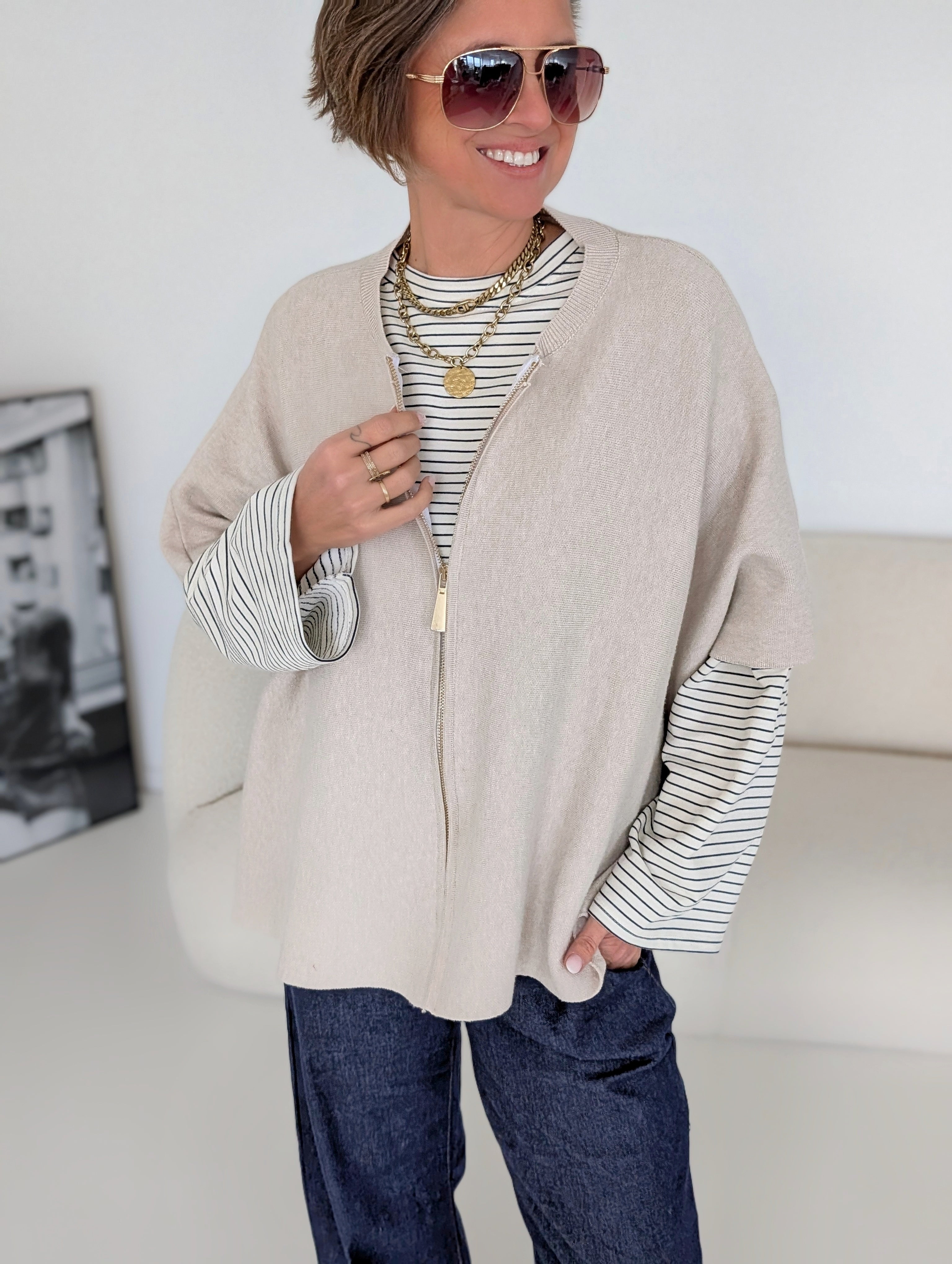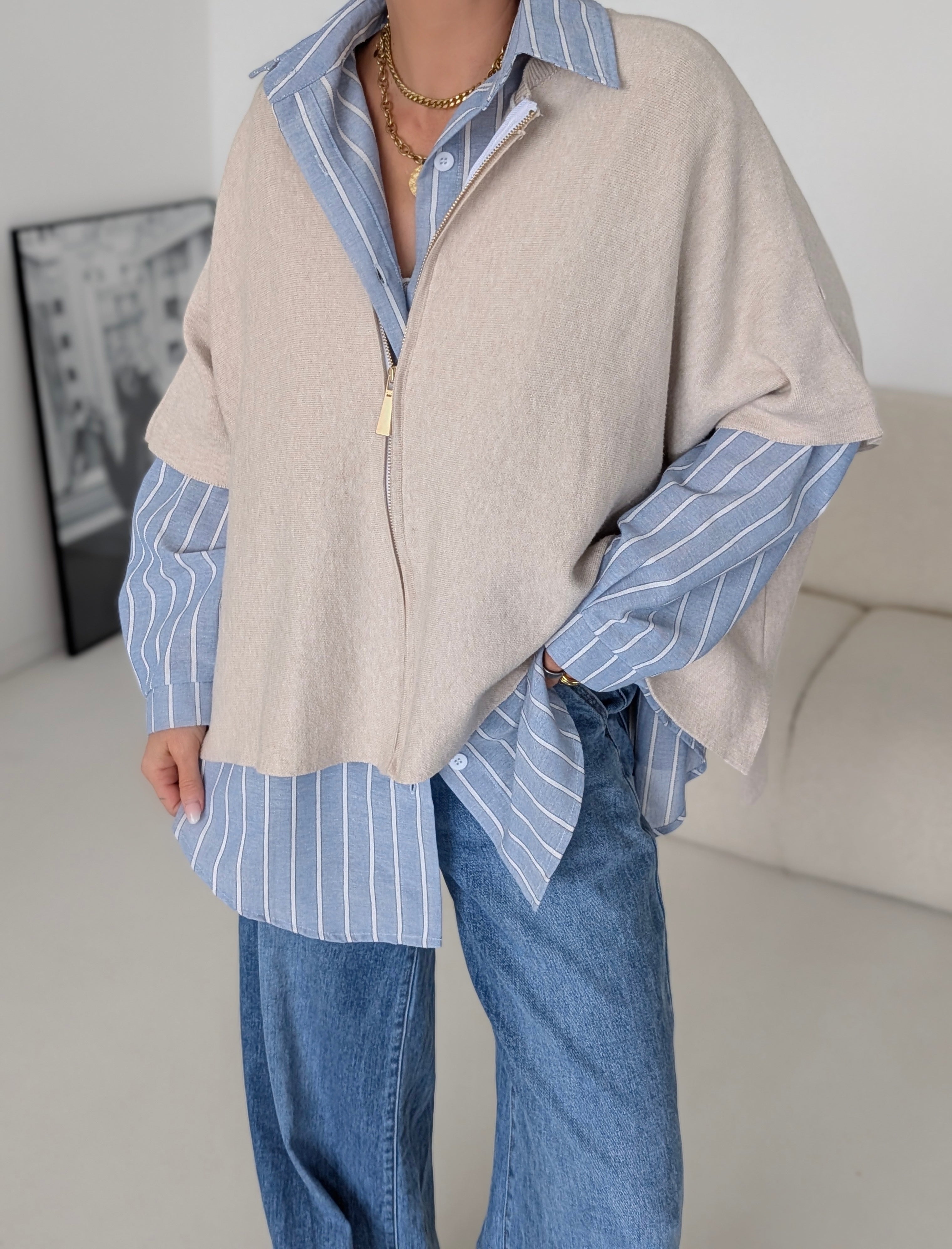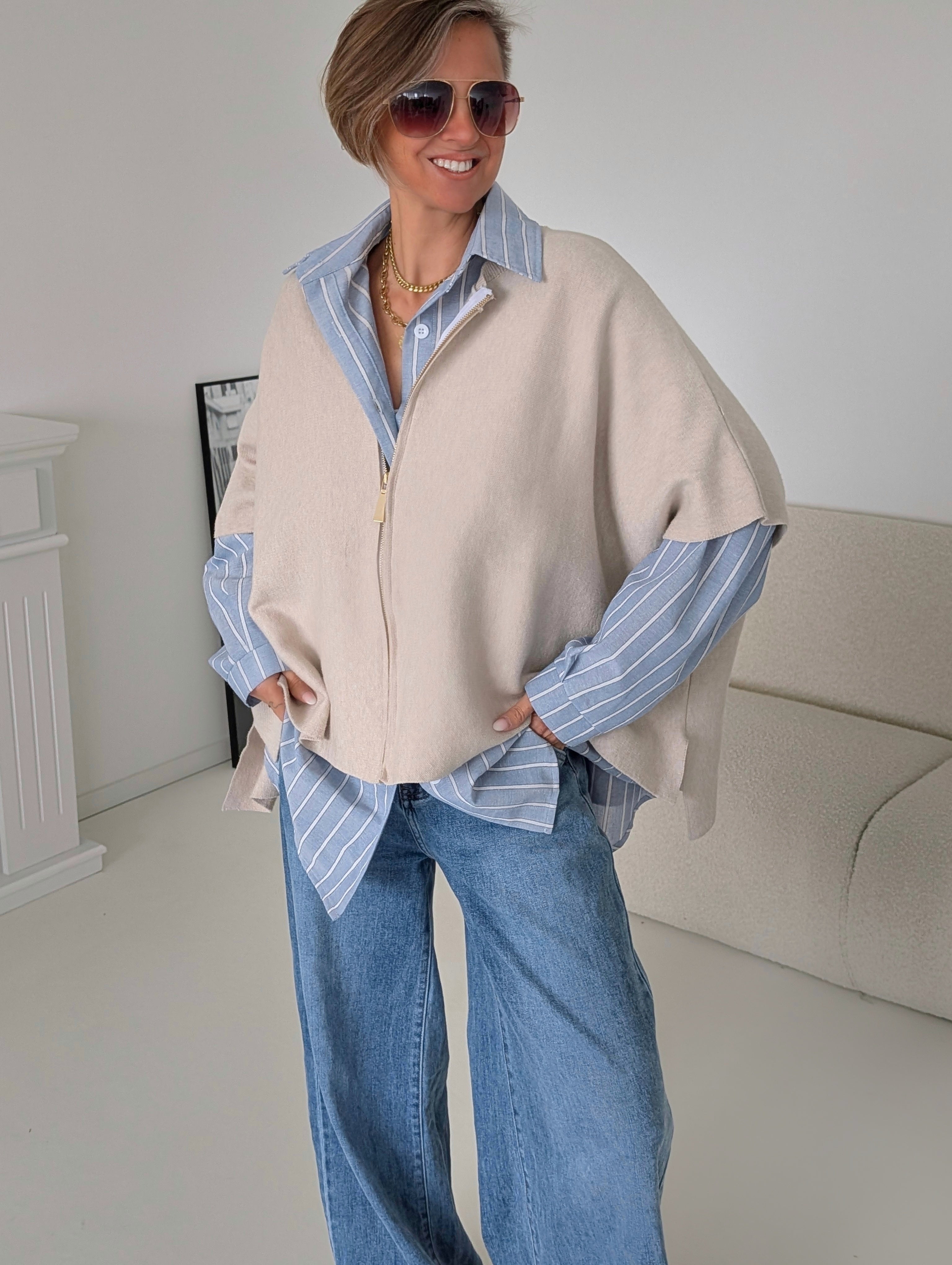 Strickweste mit ZIP PORTLAND beige