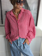 Musselinbluse THIN LINES rosa-rot