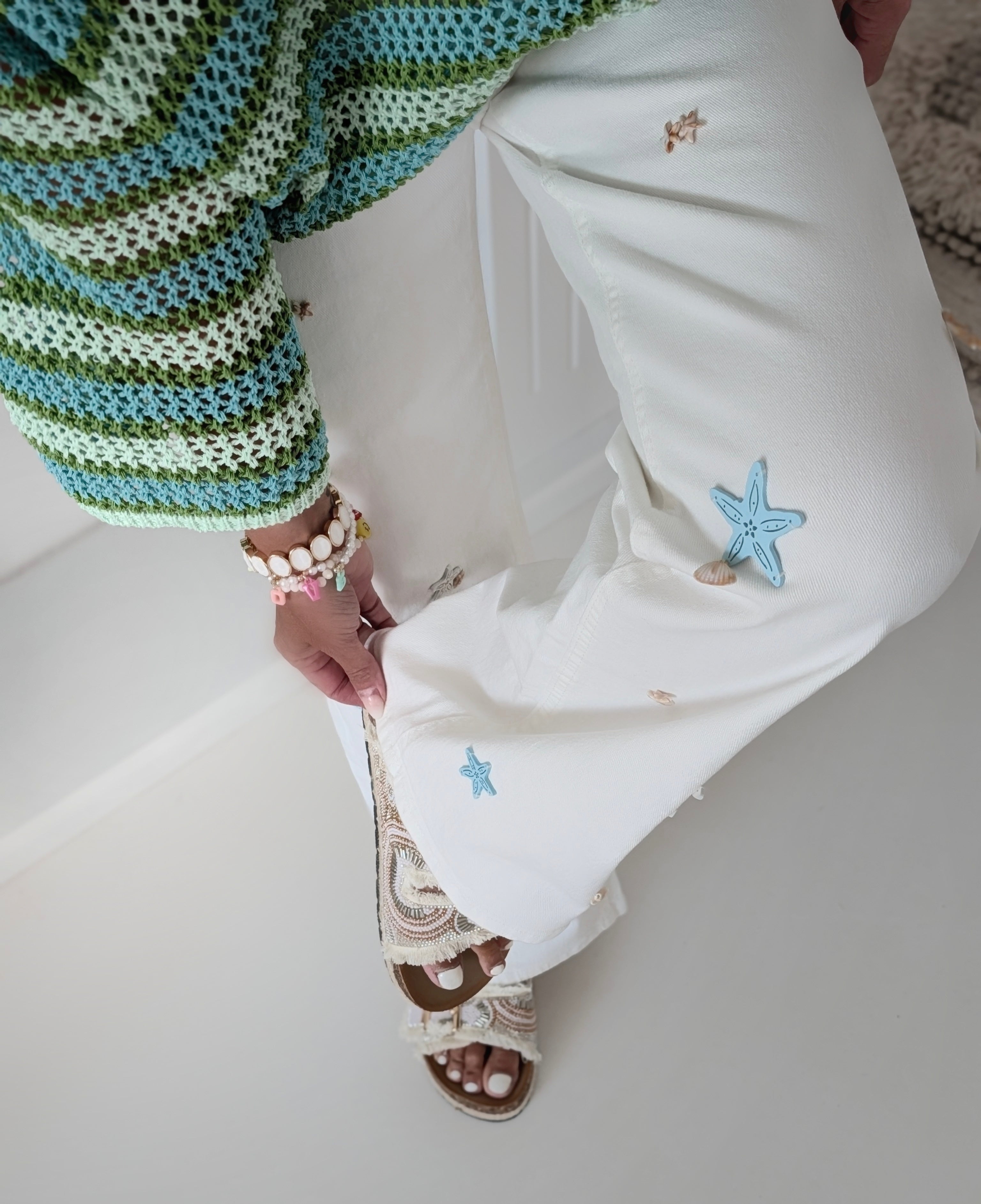 • verziert mit Applikationen in Seestern-Form