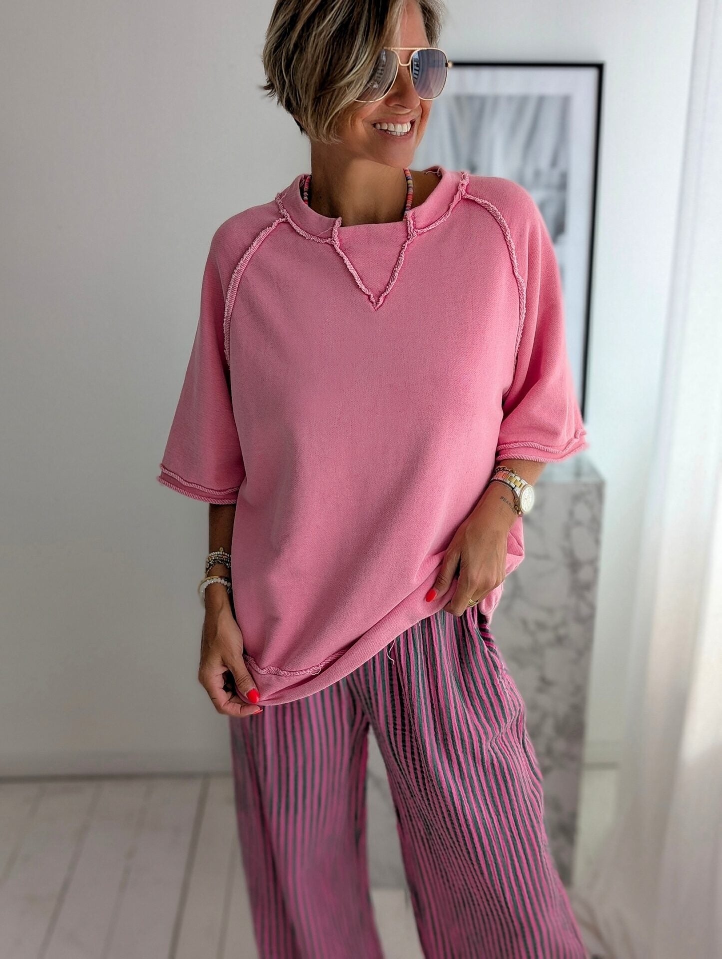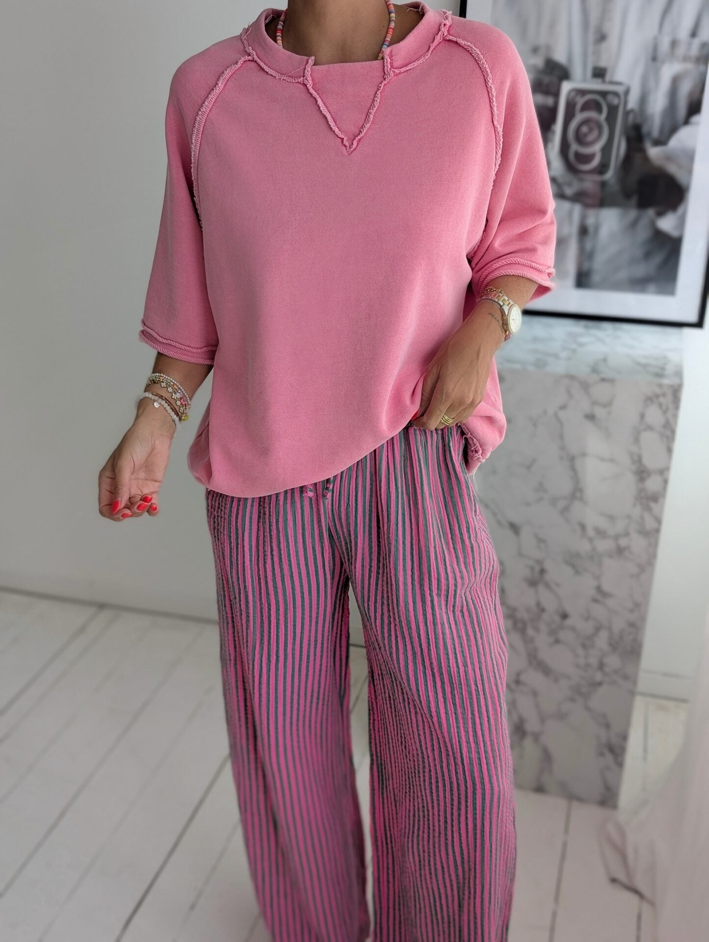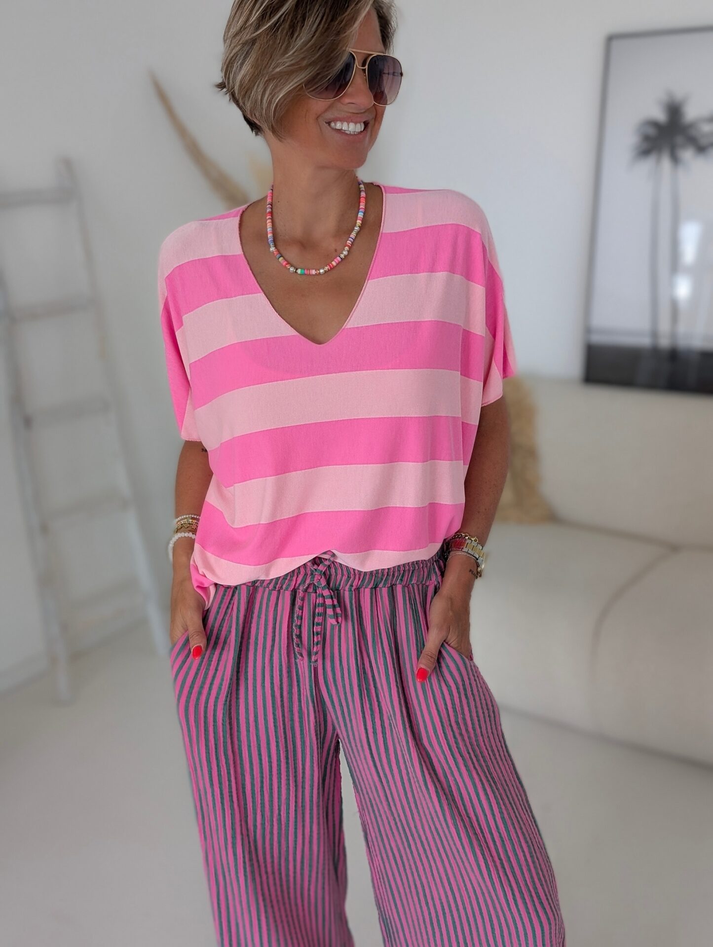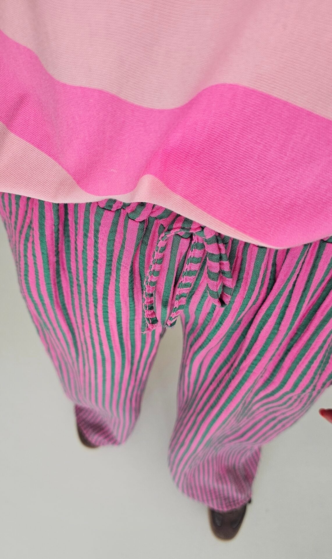 Lange Musselinhose COLOURFUL LINES pink-grün