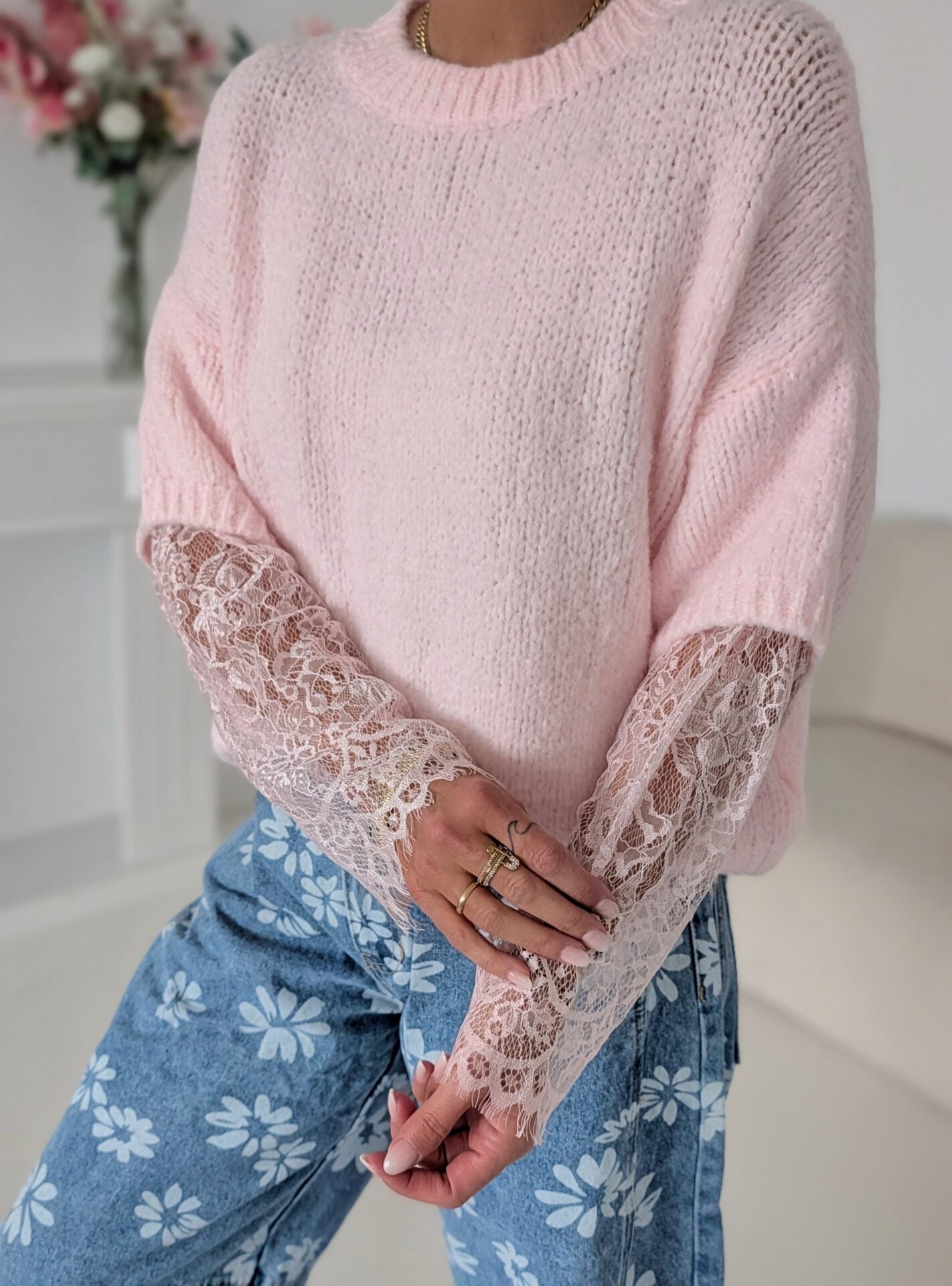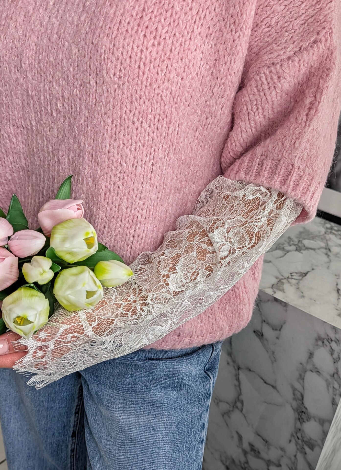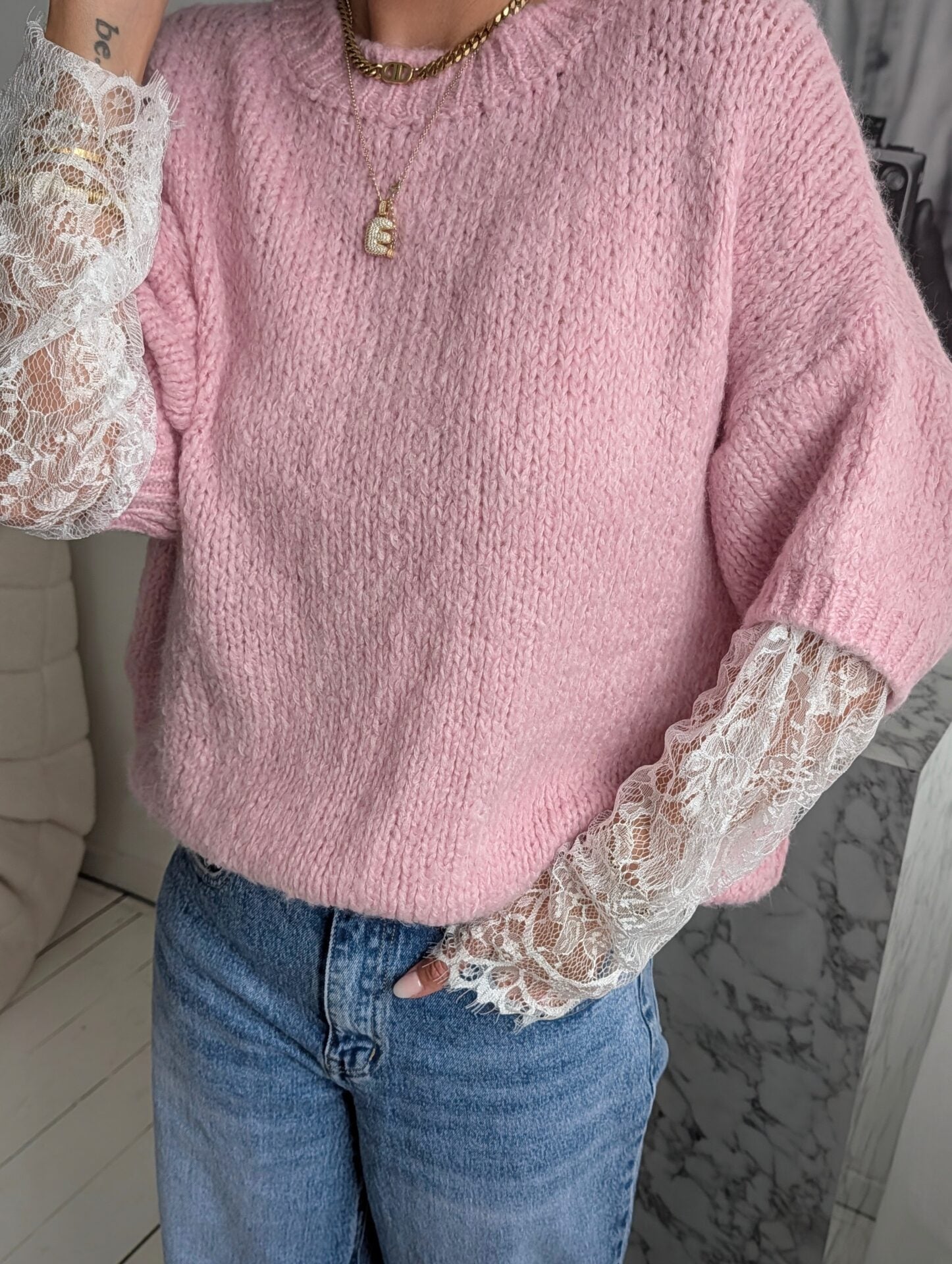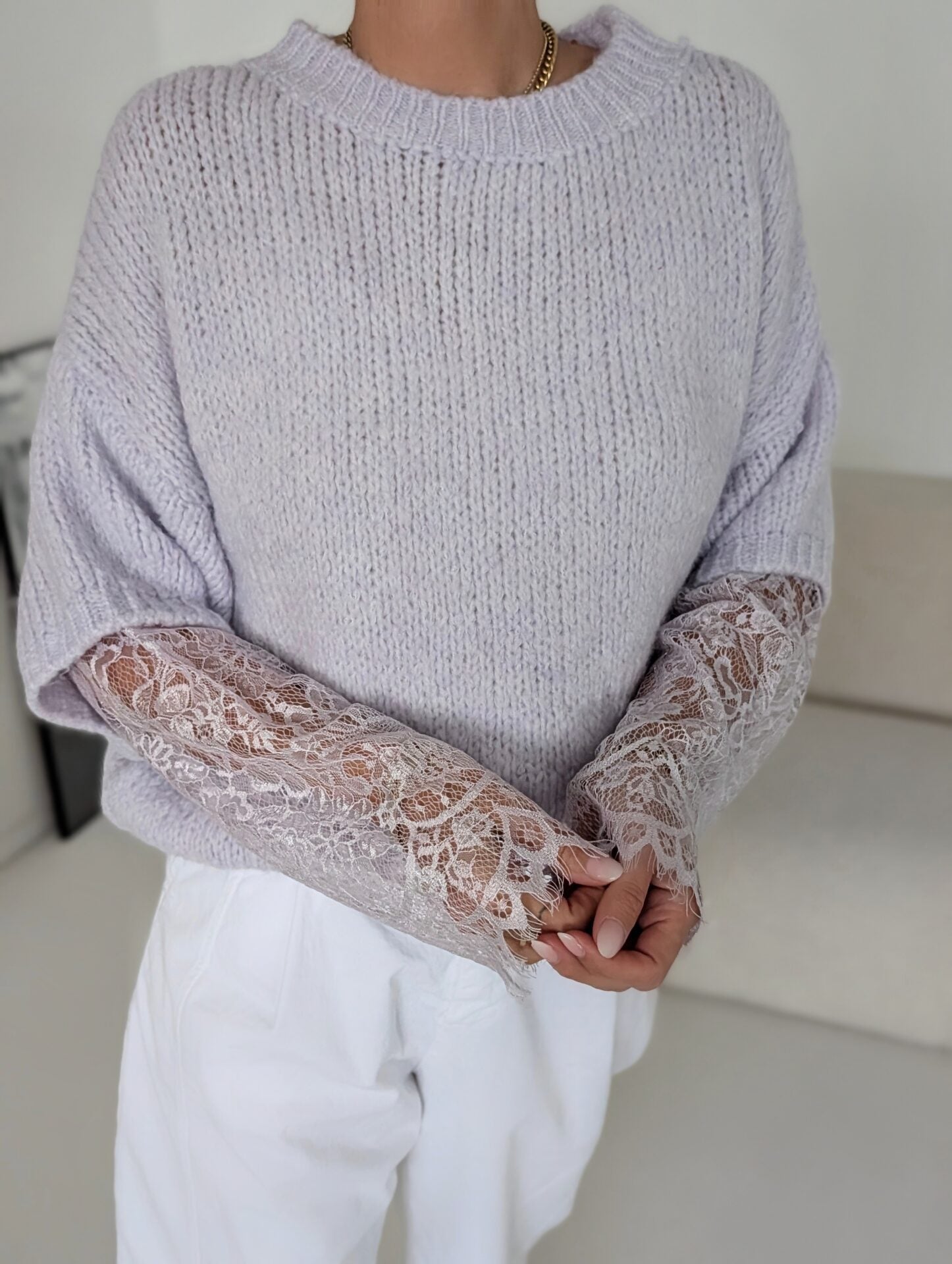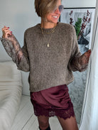 Pullover mit Spitzenärmeln LACE PEEK - versch. Farben SUPER SALE