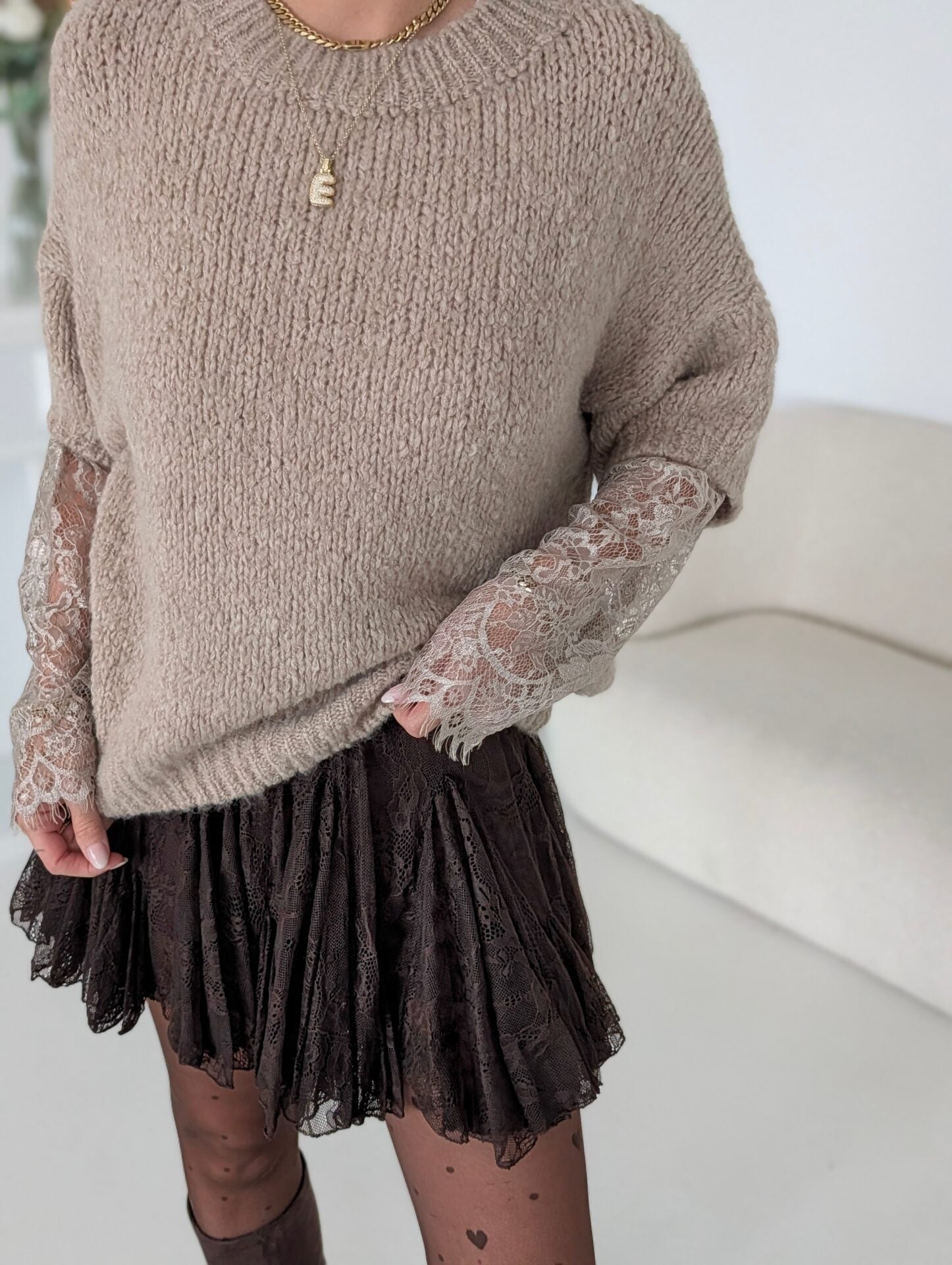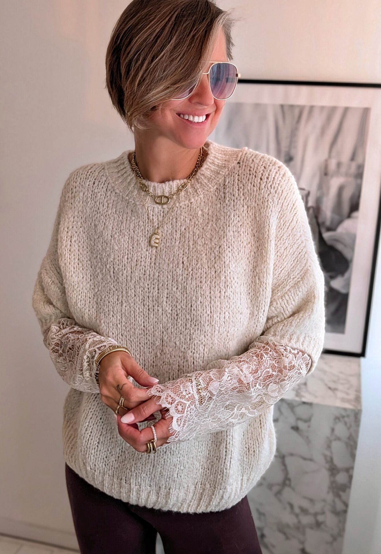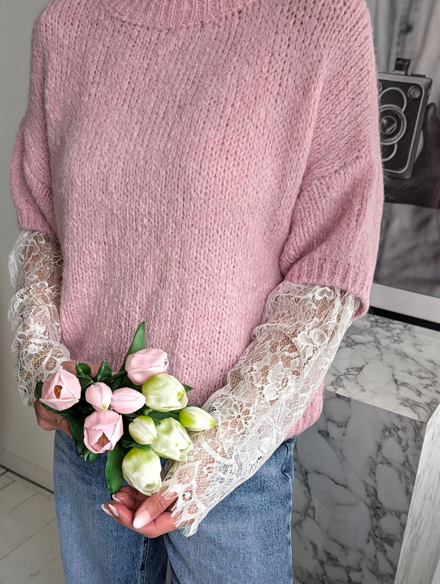 Pullover mit Spitzenärmeln LACE PEEK - versch. Farben SUPER SALE