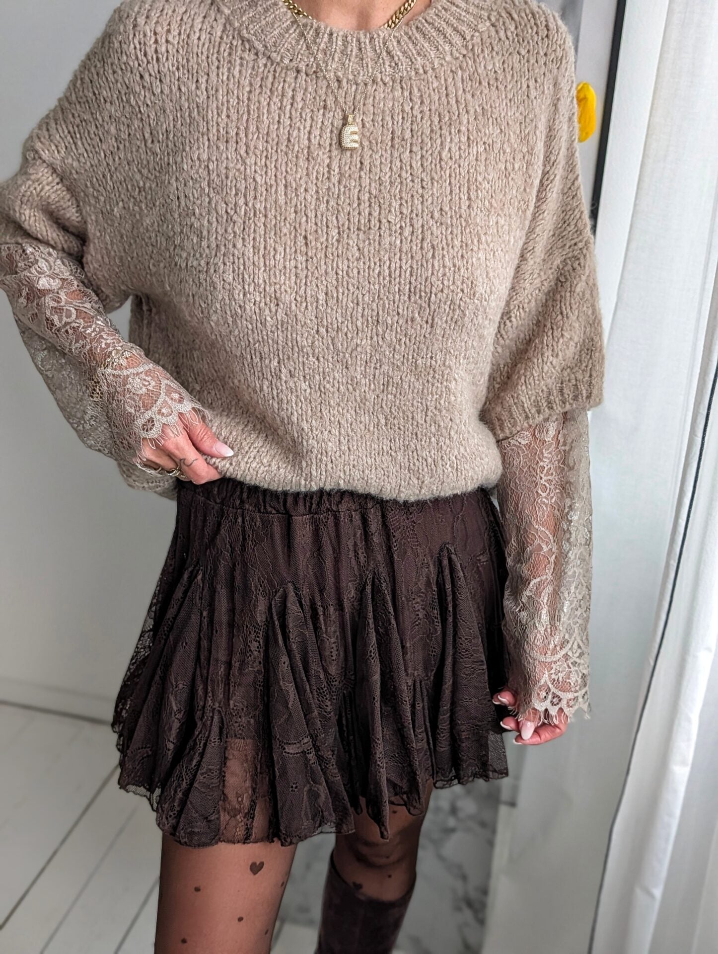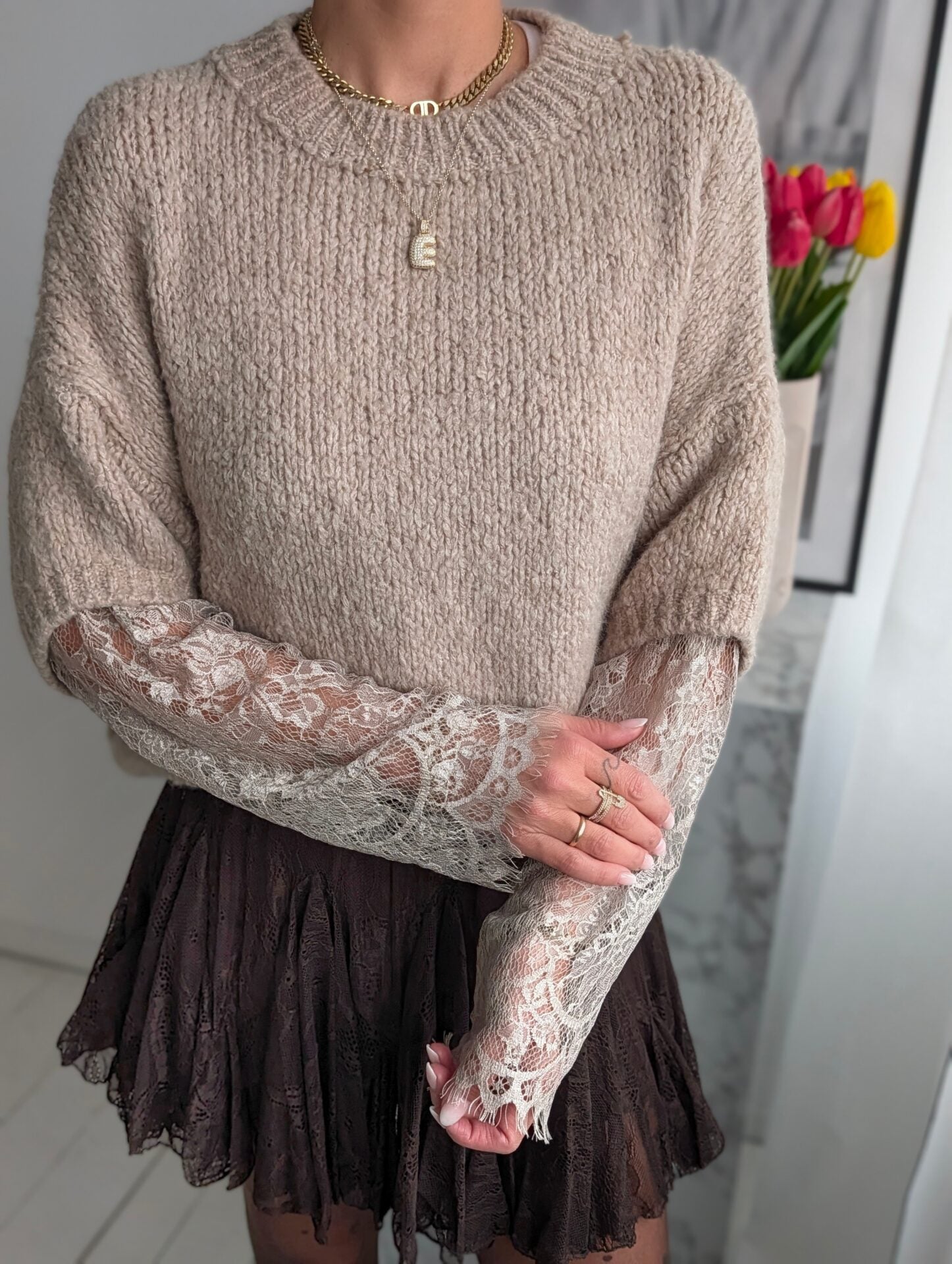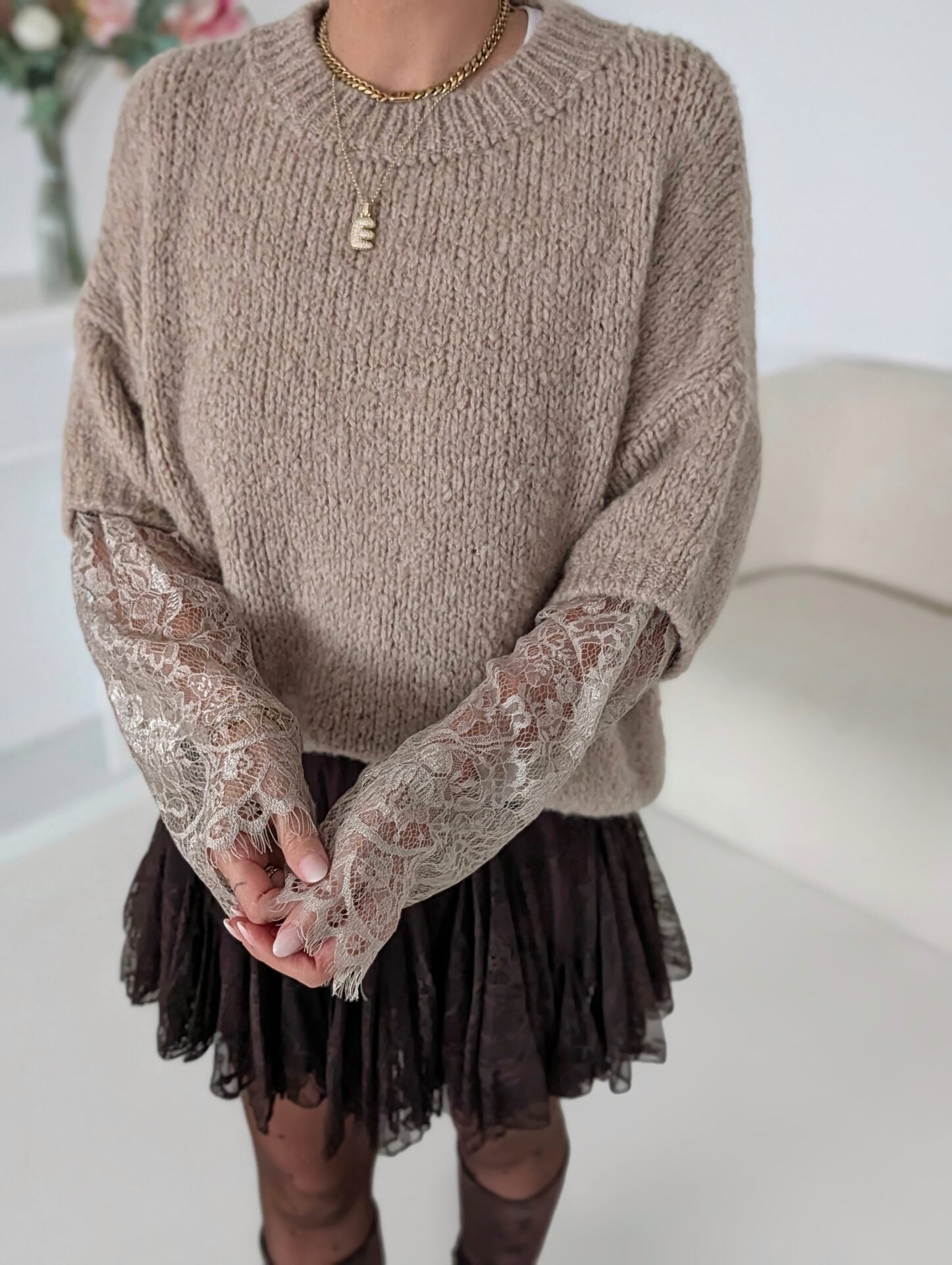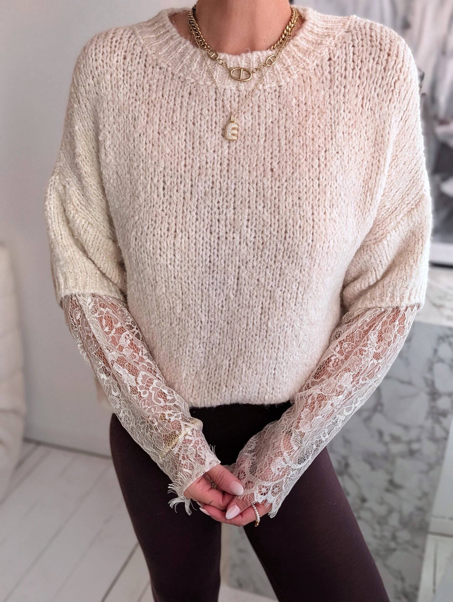 Pullover mit Spitzenärmeln LACE PEEK - versch. Farben SUPER SALE