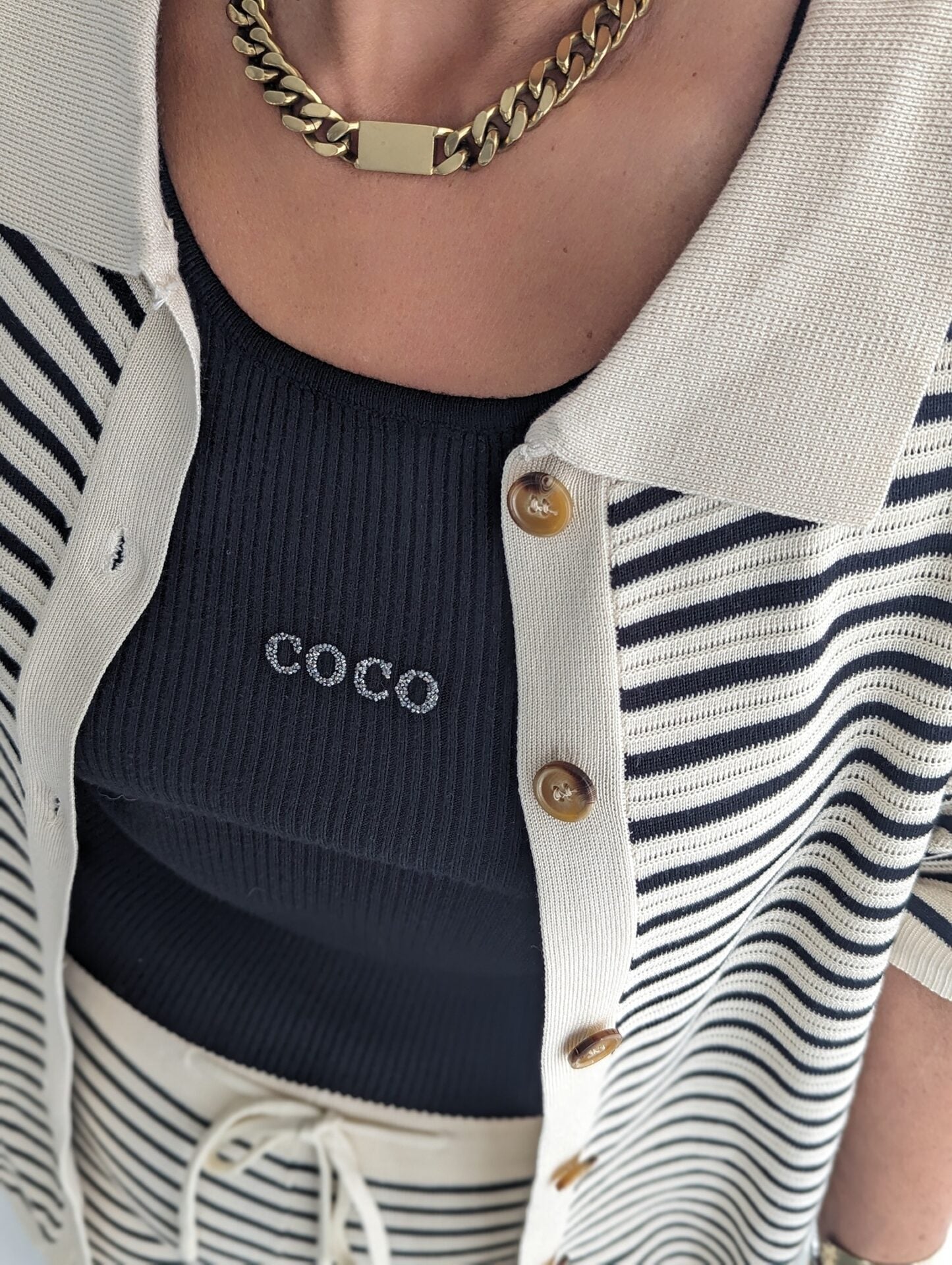 - mit Print aus kleinen Glitzersteinen
