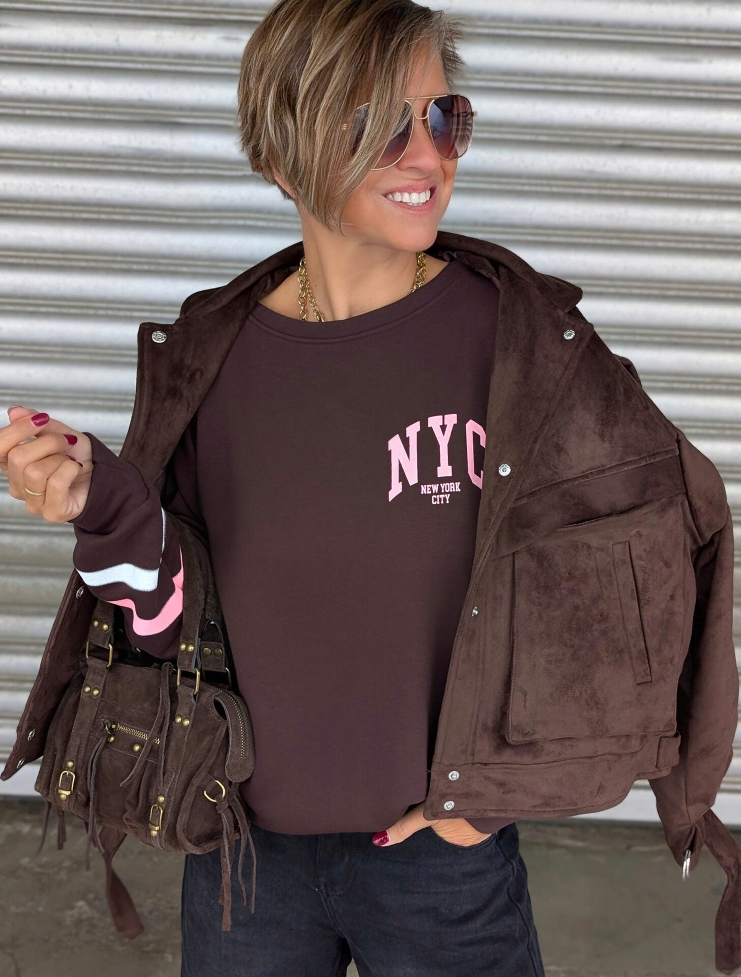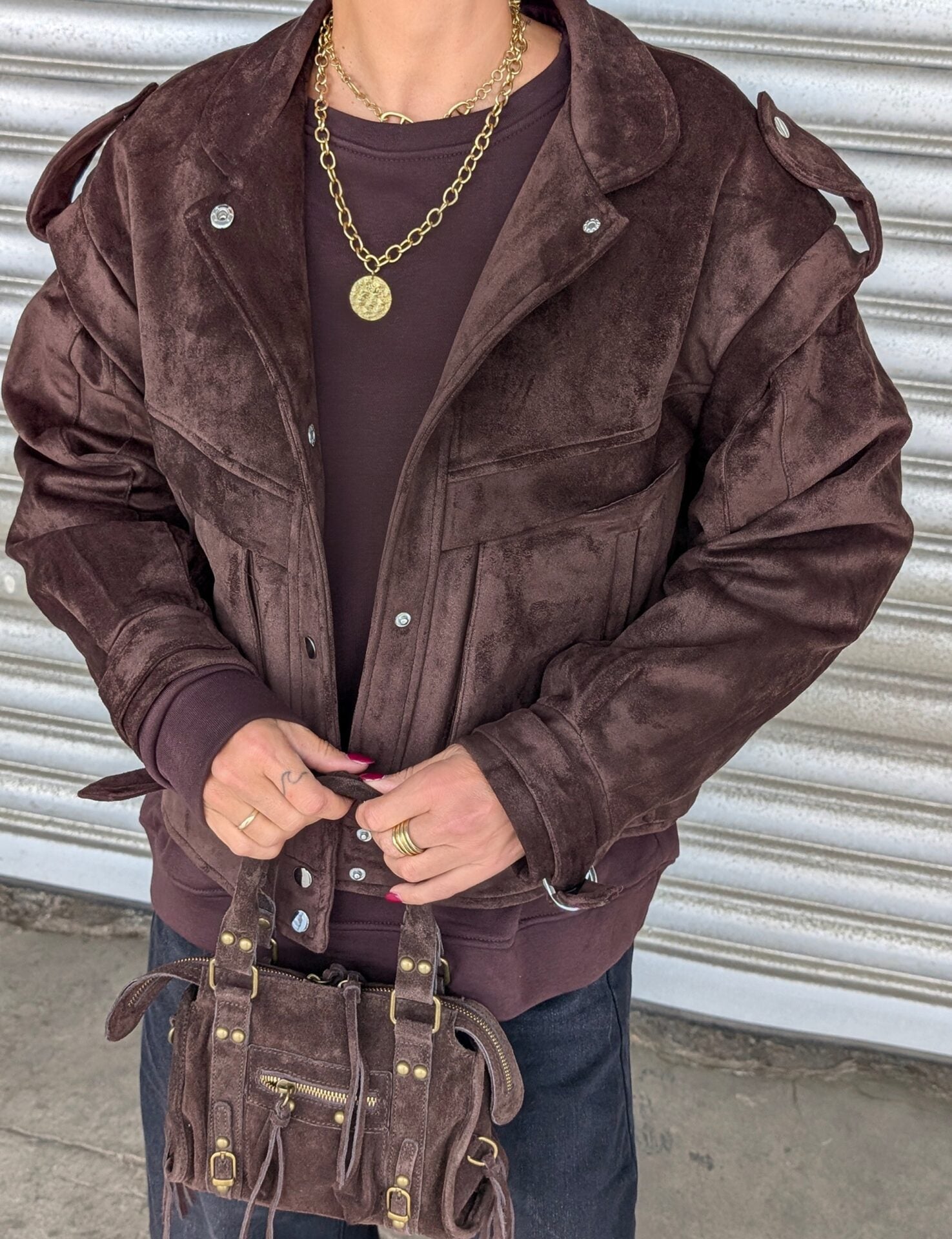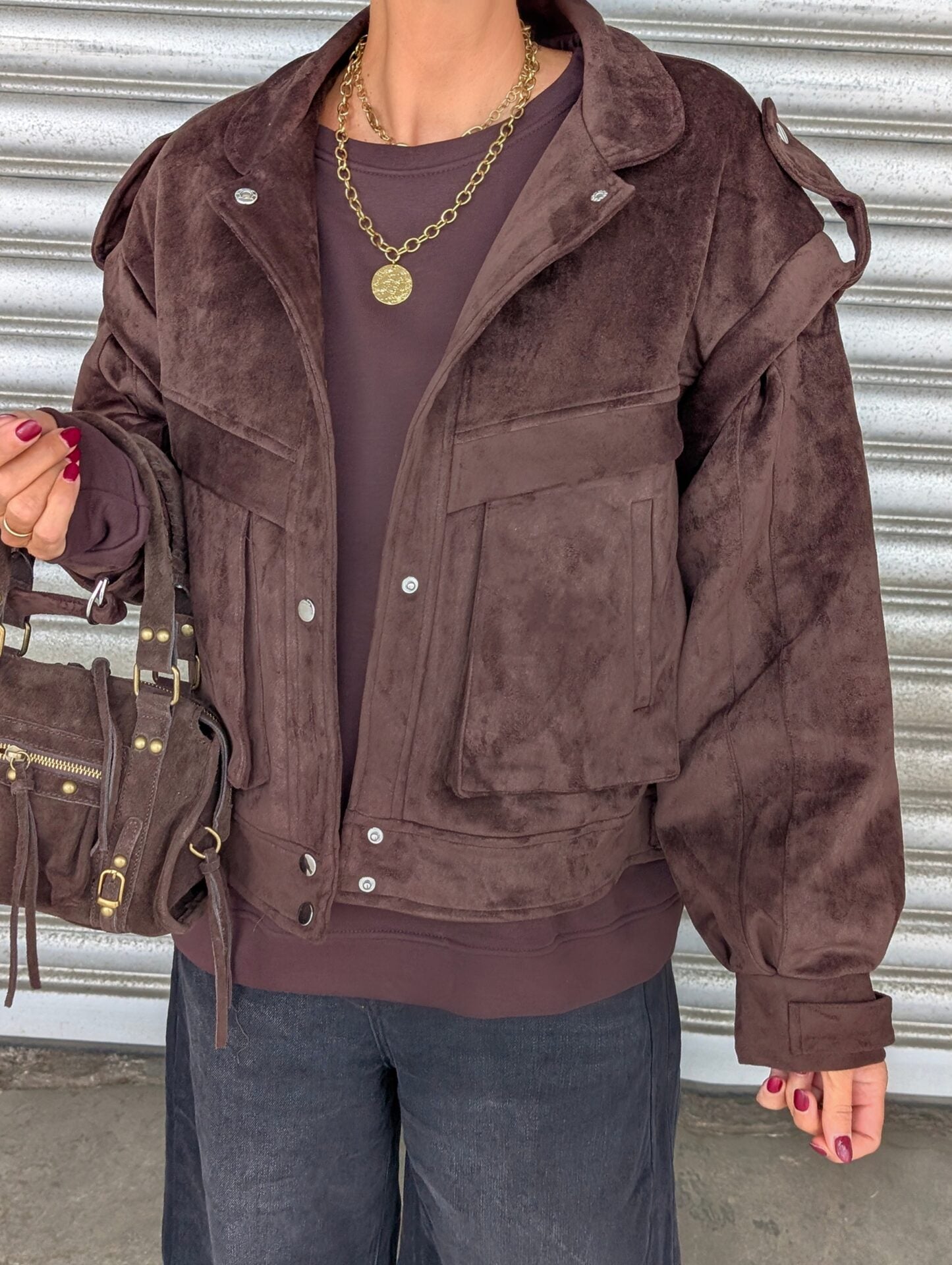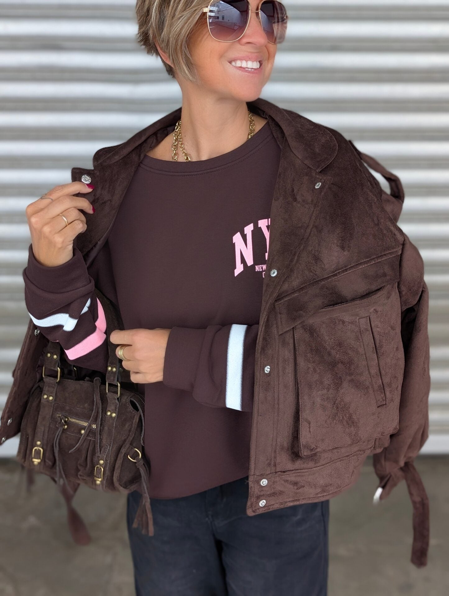 Kunstlederjacke SUEDISH dunkelbraun