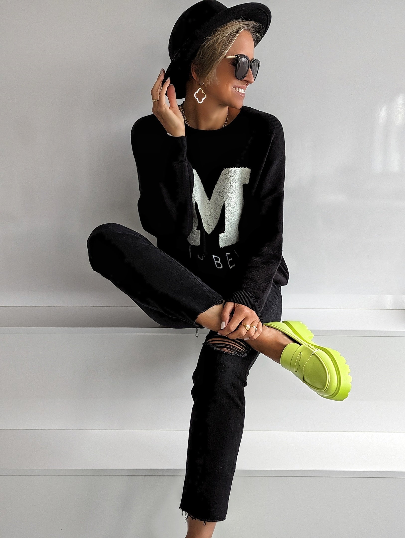 - Eva trägt auf den Bildern "BIG BLACK LEAF"
