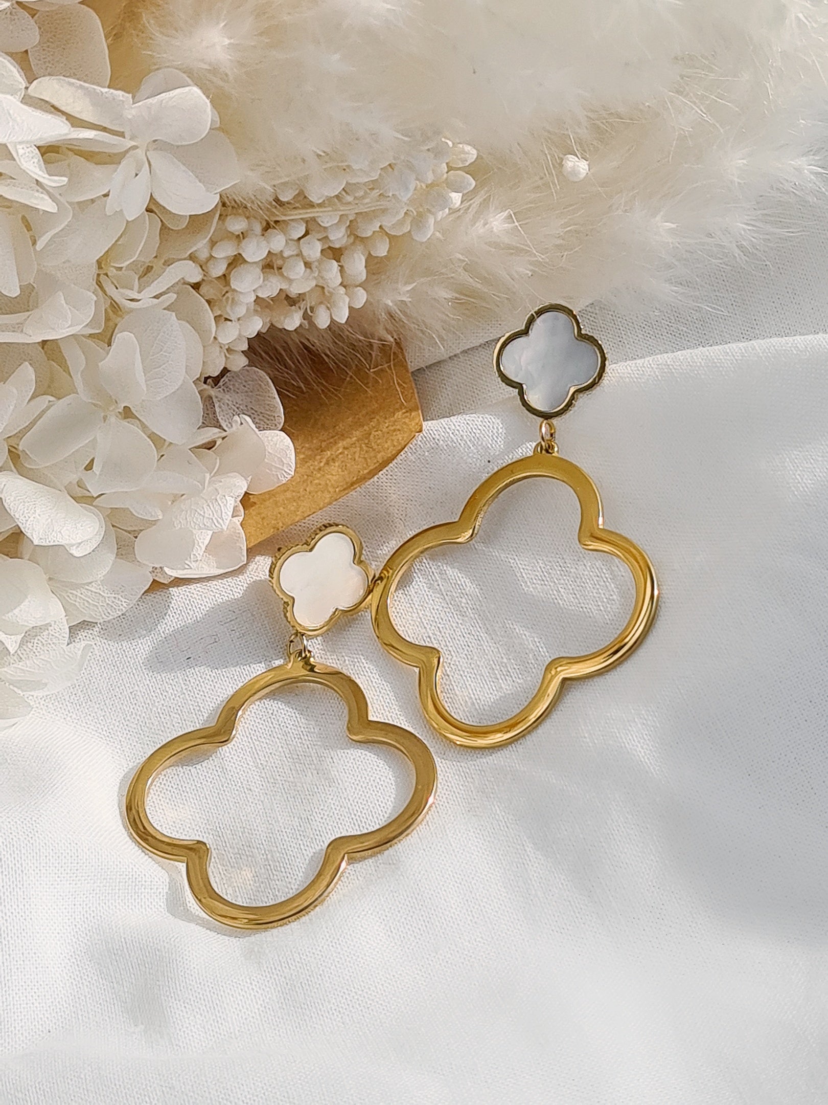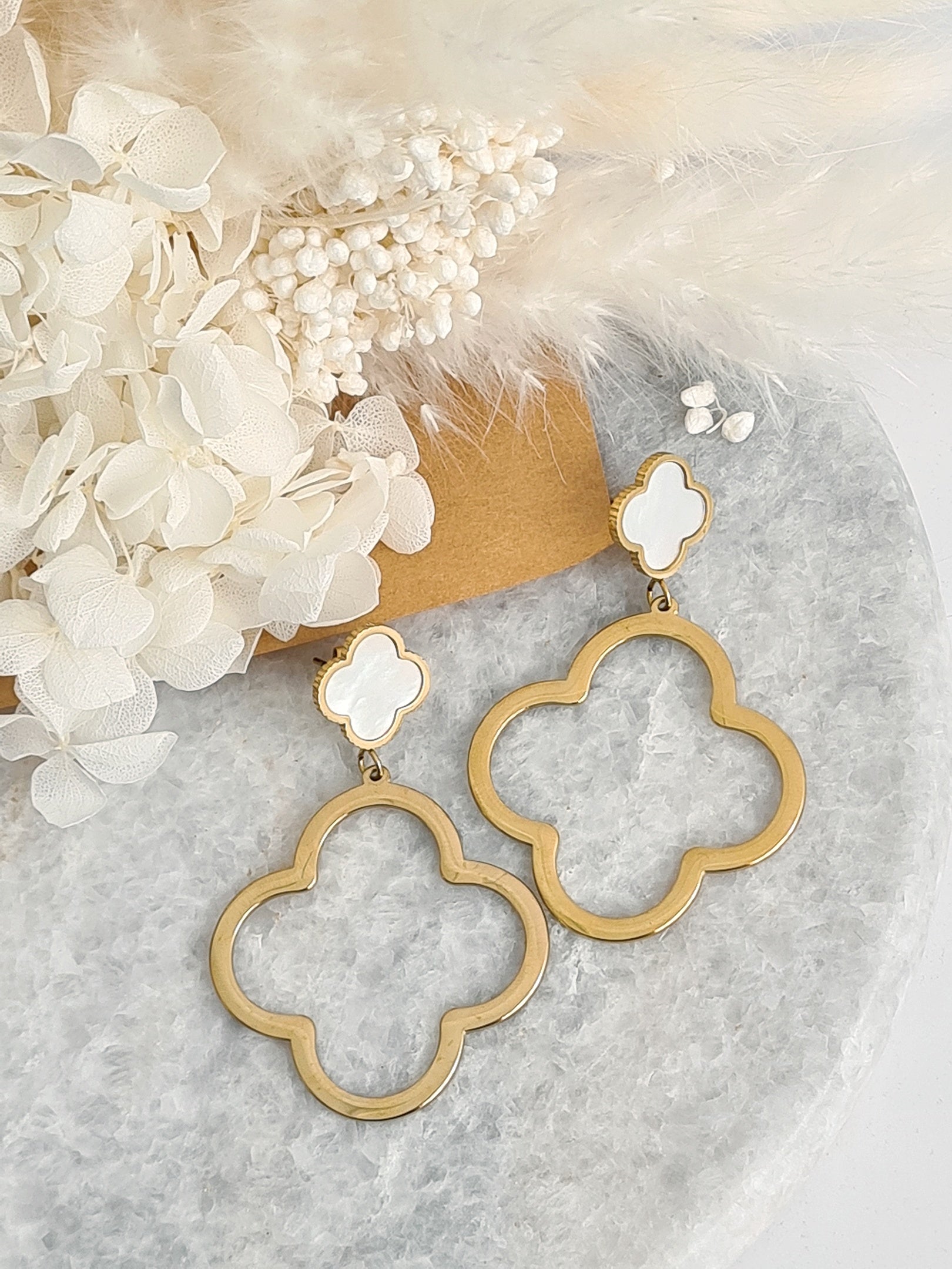 Ohrstecker - BIG WHITE LEAF - gold