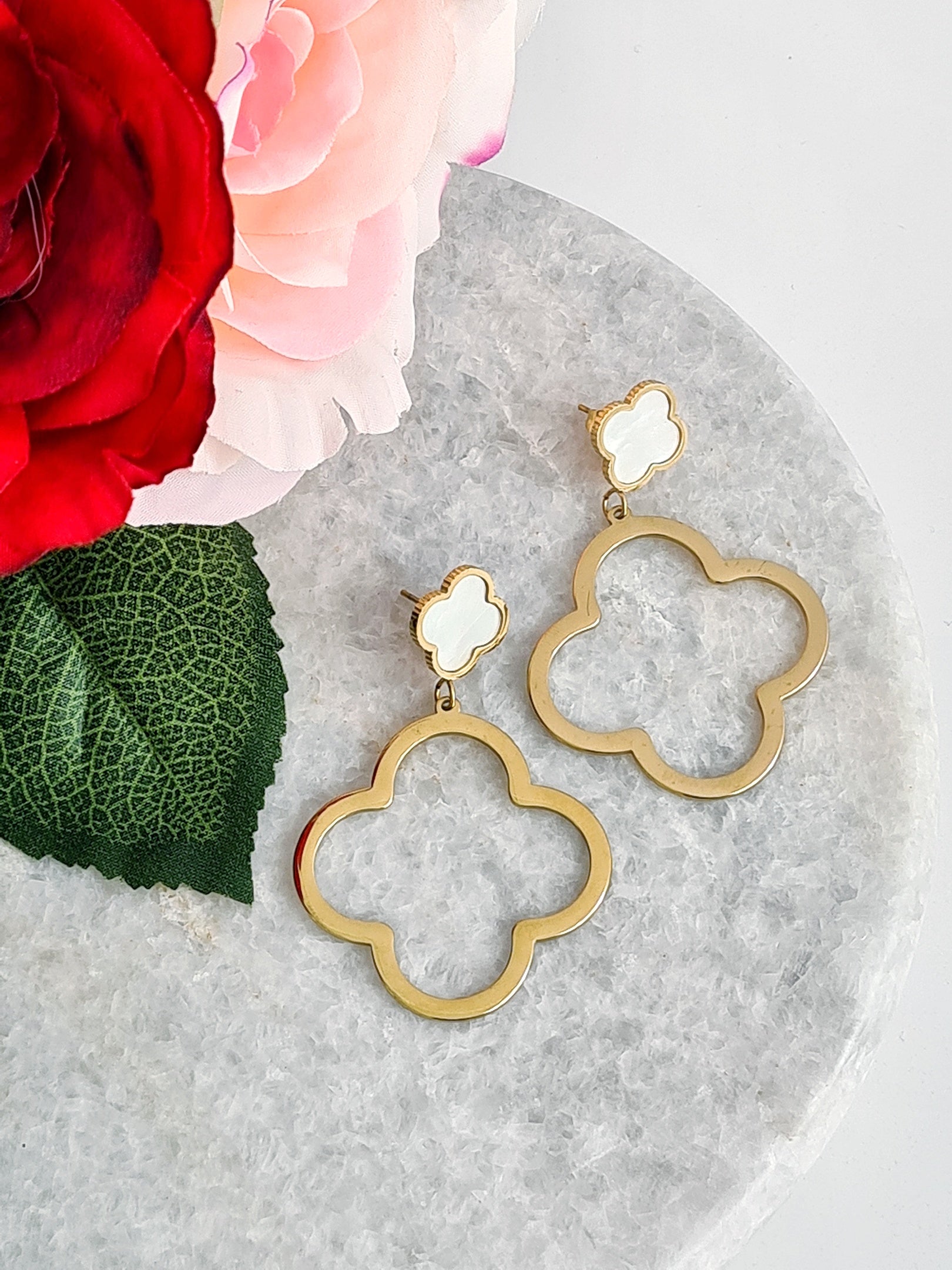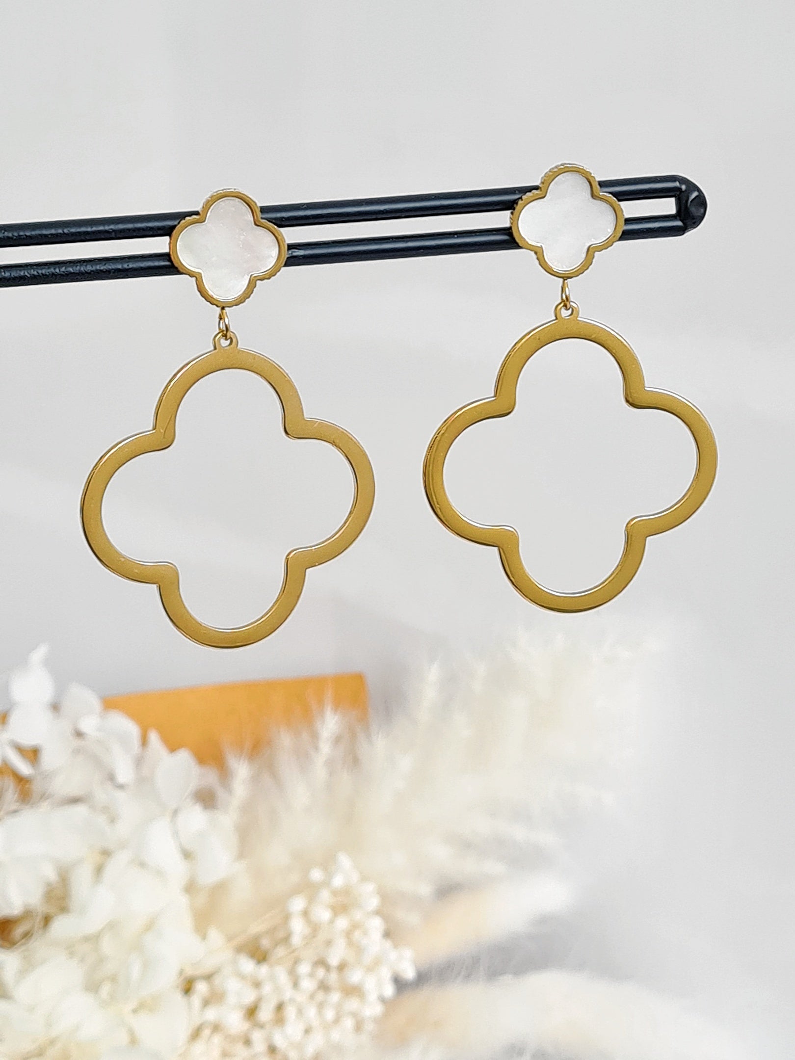 - kleine Kleeblatt-Ohrstecker in weiss