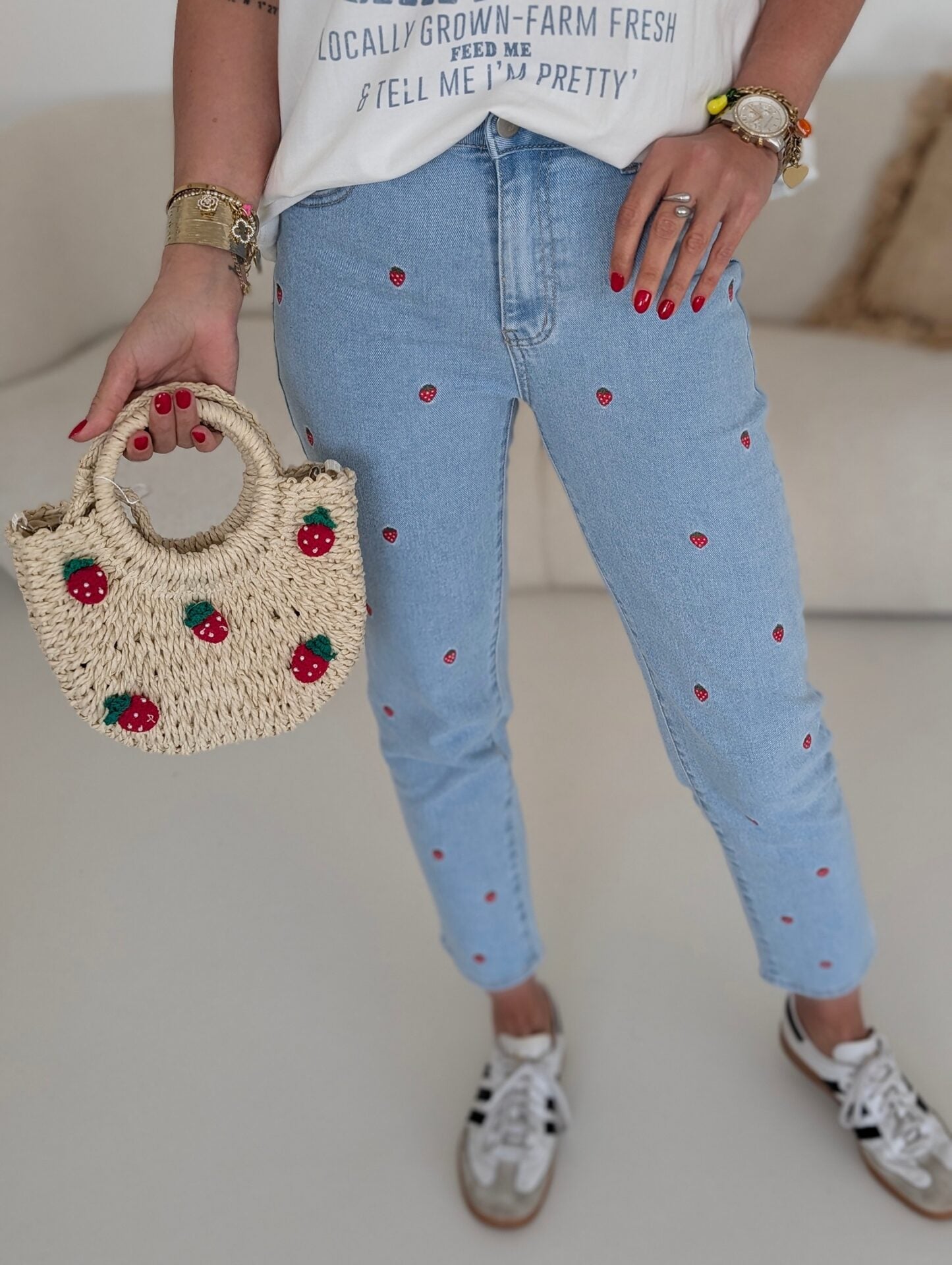 SLIM MOM Jeans STRAWBERRY blau