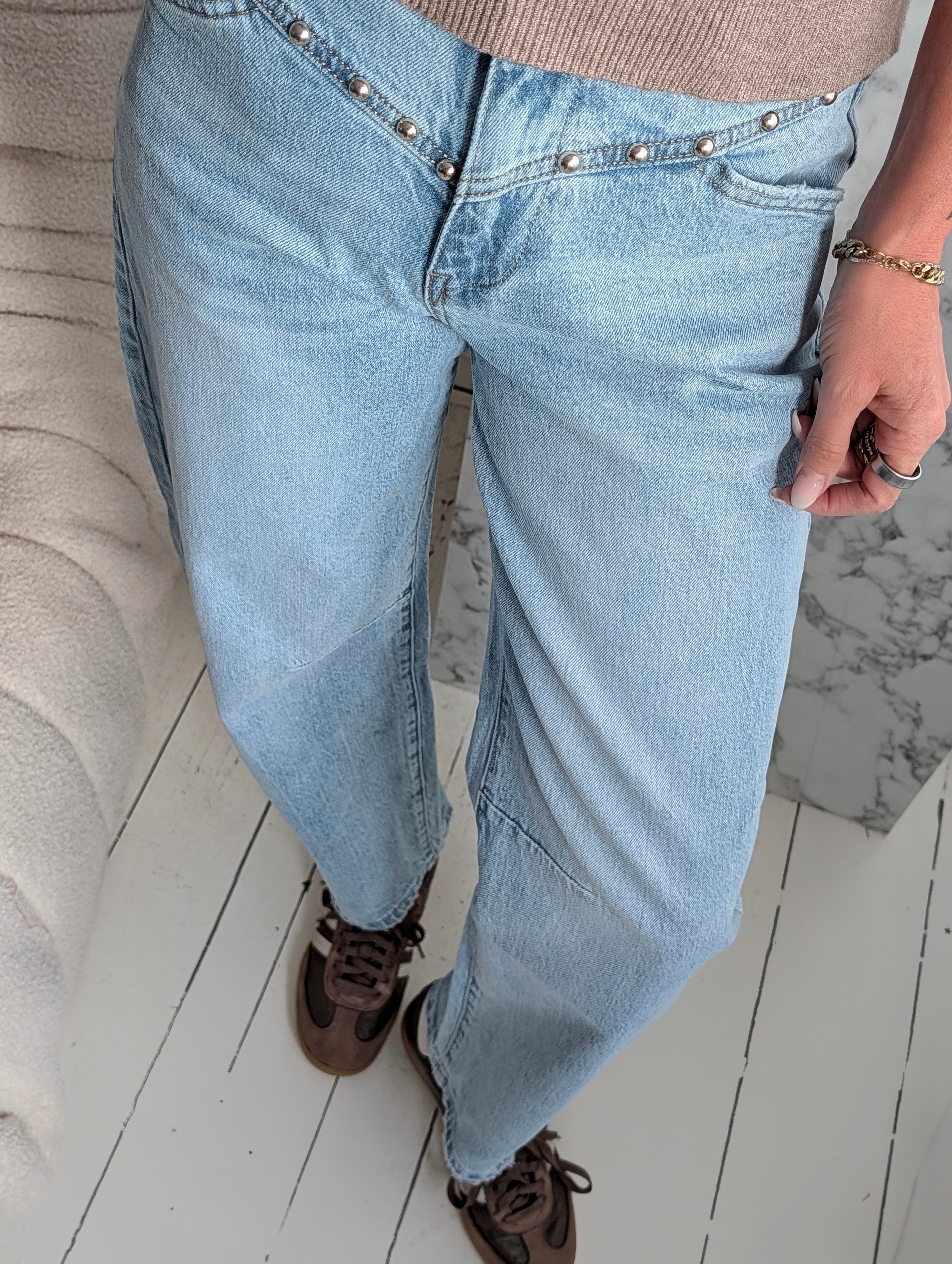 Studded Barrel Jeans MATHILDA hellblau